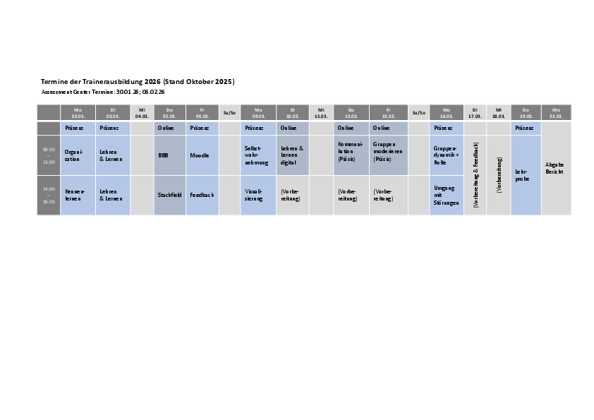 - Gruppen moderieren und einiges mehr, was es braucht um ein guter Trainer/eine gute Trainerin zu sein, näher gebracht.