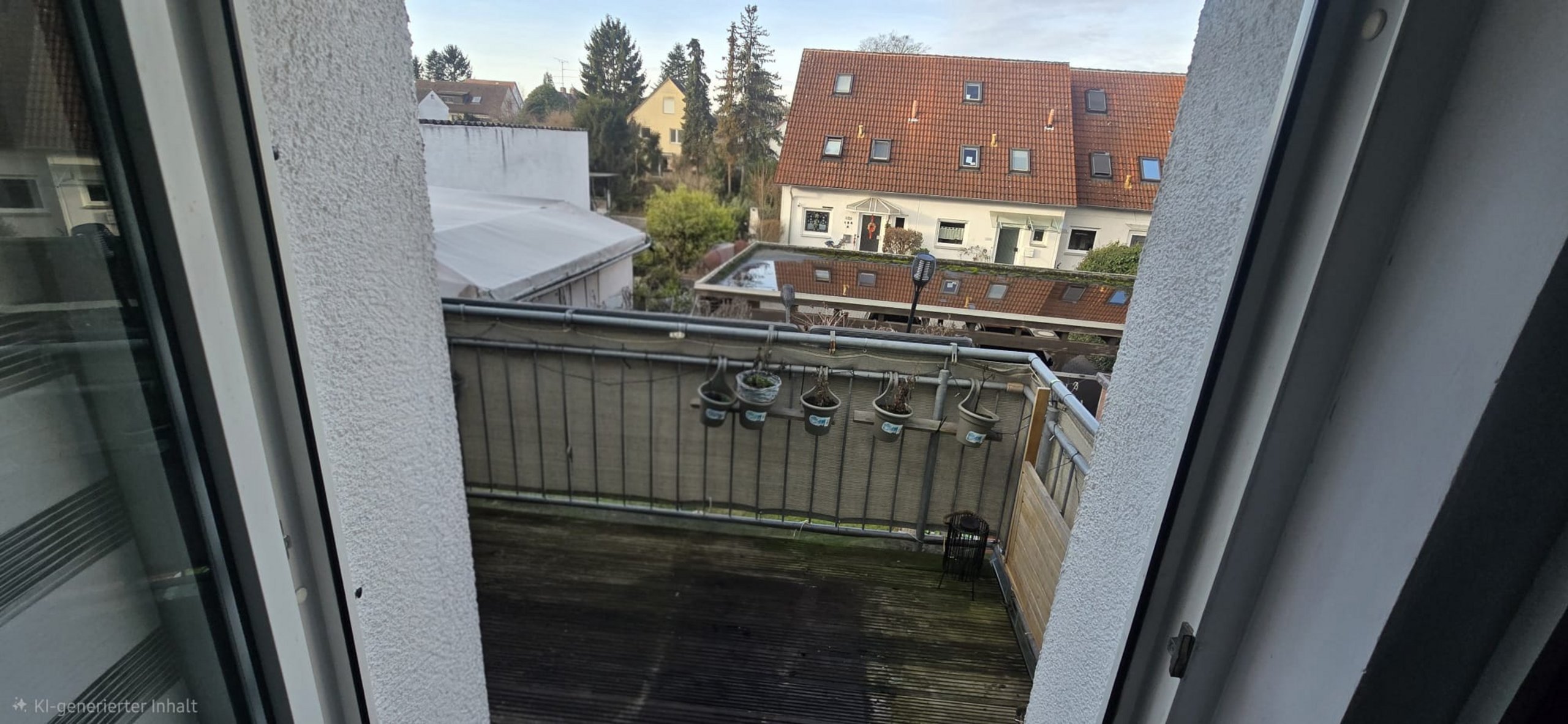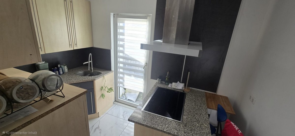 In der Küche ist eine kleine Einbauküche. Vor der Küche befindet sich ein Balkon.